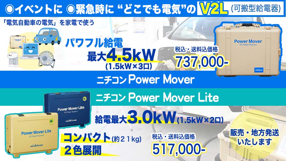 * ニチコン(株)の可搬型給電気「ニチコン パワー・ムーバー®︎」「ニチコン パワー・ムーバー ライト®︎」取扱中です